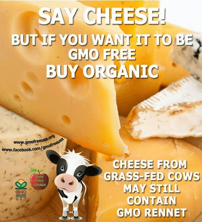 In cheese production, coagulants called rennet are used to clot milk. The primary enzyme in rennet driving the clotting process is called chymosin, which acts on milk proteins like casein and makes milk curdle. In recent decades chymosin has been developed using a genetic engineering process. Many activists and the Non-GMO Project misrepresent that 90% of American cheeses, and most cheese in Europe and other industrialized countries, are genetically modified. Organic activists and some manufacturers claim that heese made from natural rennet — rare today except in soft cheeses — are “non GMO” and healthier for you.